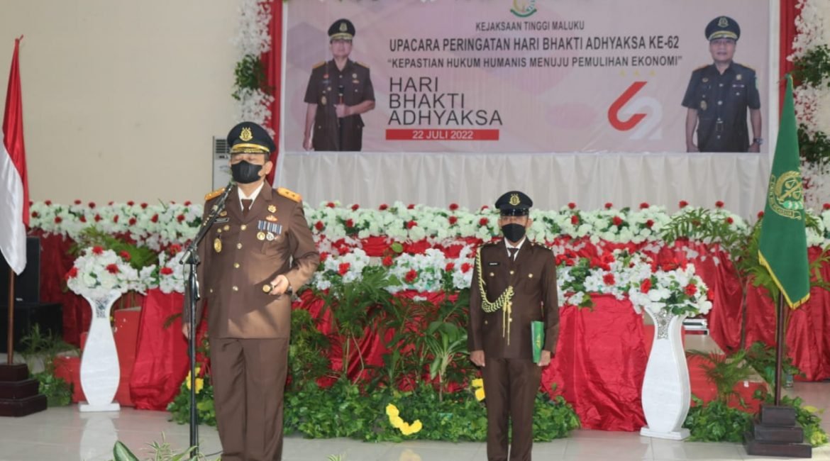 PUSAKAMALUKUNEWS.COM – Peringatan Hari Bhakti Adhyaksa Ke-62 Tahun 2022 yang diperingati di lingkup Kejaksaan Tinggi Maluku, dipimpin langung oleh Kepala Kejaksaan Tinggi Maluku, Dr. Undang Mugopal, S.H., M.Hum sebaga Inspektur Upacara yang berlangsung di Auditorium Universitas Pattimura Ambon. Jumat, (22/07). Hadir dalam upacara Hari Bhakti Adhyaksa Ke-62 masing-masing Wakajati Maluku,...