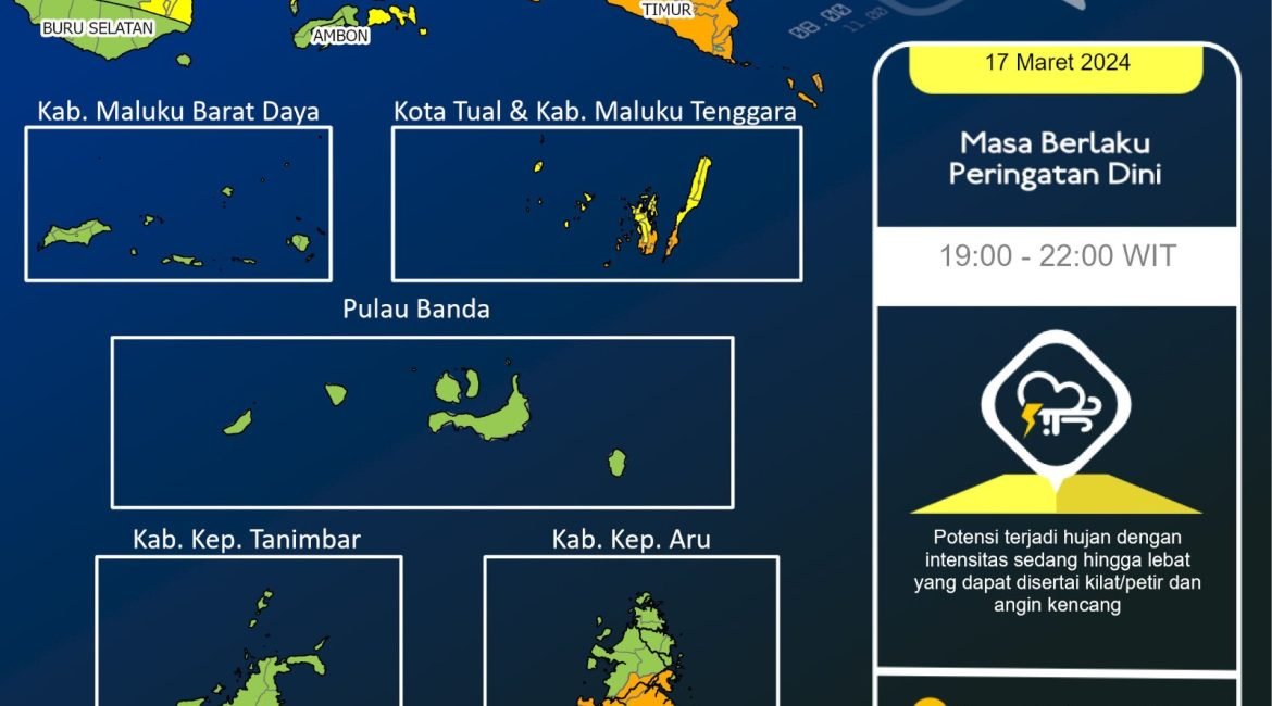 AMBON, PPID - Badan Meteorologi Klimatologi dan Geofisika (BMKG) Maluku menghimbau masyarakat kota Ambon Dan sekitar, agar mewaspadai cuaca ekstrim selama sepekan ke depan. Kepala BMKG Maluku, Djati Cipto Kuncoro dalam press release yang diterima Tim Media Center,pada Minggu (17/3/24), menyatakan cuaca ekstrim yang ditandai turunnya hujan dengan intensitas sedang...