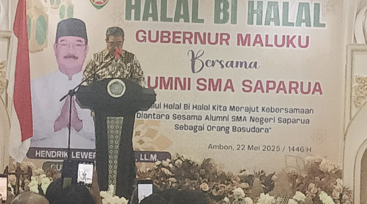 Ambon PMN Com Gubernur Maluku Hendrik lewerissa Berkesemptan hadir Diacara Halal bihal alumni SMA Negeri Saparua Gubernur Maluku Hendrik Lewerissa yang juga alumni SMA N Saparua Angkatan 1981 mengapresiasi terleksananya acara Halal bihal yang terlaksana dengan Keakraban Hadir ketua alumni Prof Dr Nus saoteno mantan wakil gubernur maluku DRvZth Sahuburua...