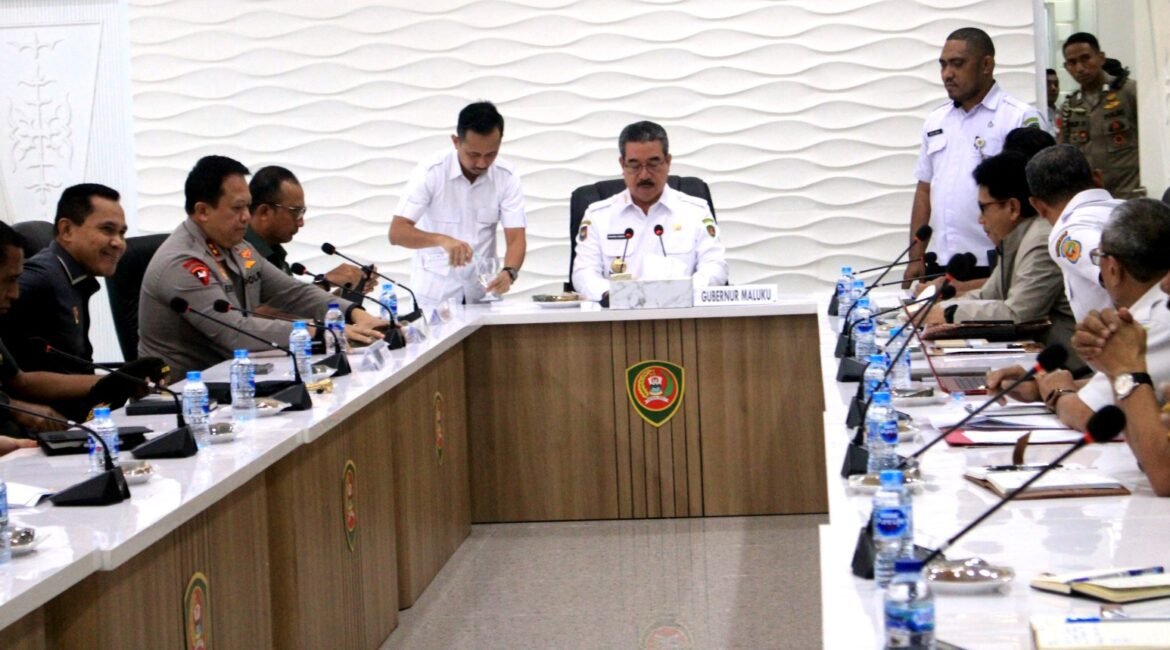 'PMN Ambon – Juru Bicara Gubernur Maluku, Kasrul Selang usai melakukan rapat terbatas antara Pemerintah Provinsi Maluku Bersama Forum Komunikasi Pimpinan Daerah Provinsi Maluku memberikan keterangan terkait pertemuan dimaksud yang bertempat di Lobby lantai 2 Kantor Gubernur Maluku, Rabu (9/7/2025). Di hadapan sejumlah Awak Media, Selang mengatakan inti dari hasil...