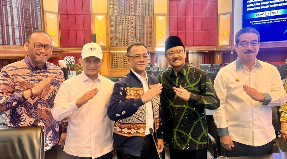 PMN com Jakarta – Kementerian Sosial Republik Indonesia menggelar acara penandatanganan Perjanjian Pinjam Pakai Barang Milik Daerah (BMD) dalam penyelenggaraan Sekolah Rakyat, yang berpusat di Gedung Aneka Bhakti, Kementerian Sosial, Jakarta Pusat, Kamis (10/7/2025). Penandatanganan ini diikuti juga oleh 41 instansi Pemerintah Daerah serta dua Universitas yang mendukung penyelenggaraan Sekolah...