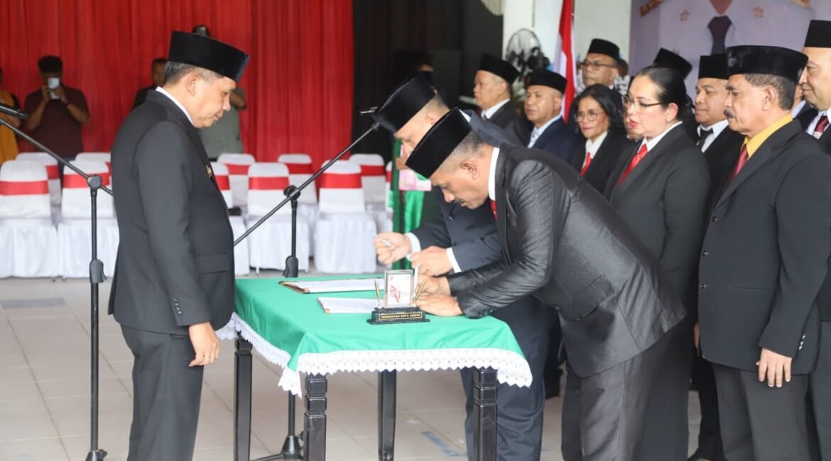 Pusaka Maluku .com,Ambon,-Bertempat di Gedung Transit paso Walikota Ambon, Drs Bodewin Wattimena, melantik dan mengukuhkan pejabat pimpinan tinggi Pratama di lingkup Pemerintah Kota Ambon berlangsung ,Jumat ( 22/08/25) Pelantikan dan pengukuhan tersebut bedasarkan surat Keputusan No 3337 Tahun 2025 pada tanggal 21 agustus 2025 Pada acara Pelantikan disaksikan wakil wakil...
