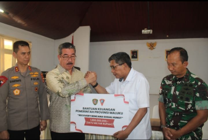 AMBON PUSAKAMALUKU- Gubernur Maluku, Hendrik Lewerissa, menyerahkan bantuan recovery bencana sosial senilai Rp2 miliar kepada Pemerintah Kota Ambon dan Pemerintah Kabupaten Maluku Tengah. Bantuan yang diserahkan masing-masing sebesar Rp1 miliar untuk korban kebakaran di Hunuth, Kota Ambon, dan Rp1 miliar bagi korban konflik sosial di Desa Masihulan, Kabupaten Maluku Tengah....