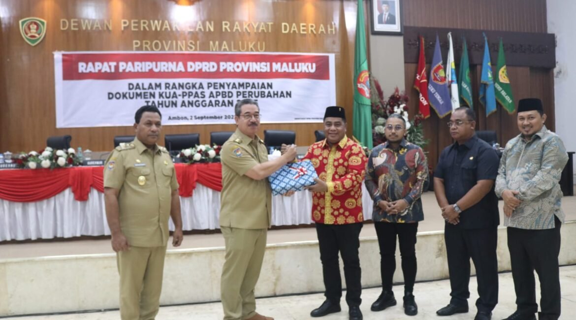 Ambon pusaka Maluku - Gubernur Maluku Hendrik Lewerissa secara resmi menyerahkan dokumen Kebijakan Umum Anggaran serta Prioritas dan Plafon Anggaran Sementara (KUA PPAS) Perubahan APBD Tahun Anggaran 2025 kepada Ketua DPRD Maluku, di Ruang Rapat Paripurna, Karang Panjang, Ambon. Selasa (2/9/2025). Penyerahan dokumen ini dilakukan sebagai bagian dari tahapan formal...