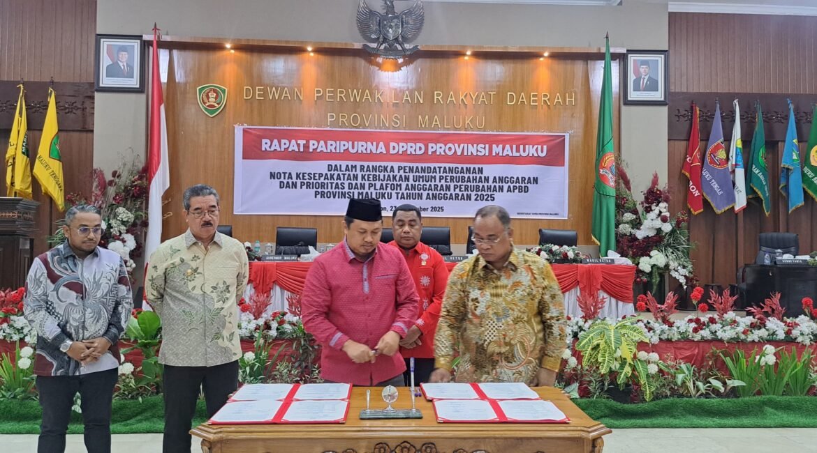 AMBON PMN com -Paripurna DPRD Maluku kembali mencatat sejarah penting dalam perjalanan tata kelola keuangan daerah. Selasa malam (23/9/2025), Gubernur Hendrik Lewerissa bersama Ketua DPRD Benhur Watubun resmi menandatangani nota kesepakatan Kebijakan Umum Perubahan Anggaran (KUPA) dan Prioritas Platform Anggaran Perubahan (PPAP) APBD Provinsi Maluku Tahun Anggaran 2025. Penandatanganan ini...