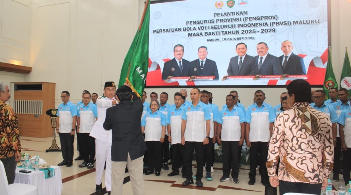 PMN-AMBON – Pengurus Provinsi (Pengprov) Persatuan Bola Voli Seluruh Indonesia (PBVSI) Maluku Masa Bhakti 2025-2029 resmi dilantik oleh Ketua Umum Pengurus Pusat PBVSI, Komjen Pol. (Purn) Dr. Imam Sudjarwo, M.Si.pada Kamis (16/10/2025) malam. Acara pelantikan yang berlangsung di Lantai 7 Kantor Gubernur Maluku, Ambon, ini dihadiri oleh Sekretaris Daerah (Sekda)...