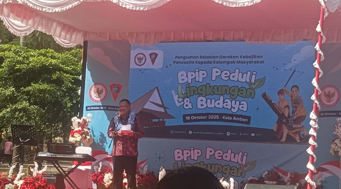 PMN COm Pemerintah kota ambon bekerjsama dengan Badan Pembinaan ideologi pancasila melaksanakan kegiatan penguatan relawan Gerakan kebajikan pancasila kepada masyarakat Kegiatan ini berlangsung di Patimurra Park kota ambon sabtu 17/10/2025 dan dihadiri langsung oleh kepala BPIP Prof Drs Yudian Wahyudi, MA Dan Deputi Hubungan antar lembaga BPIP ,Prof Drs Prakoso...