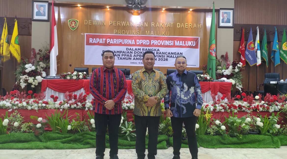 PMN COM Ambon, — Wakil Gubernur Maluku, H. Abdullah Vanath resmi menyampaikan Rancangan Kebijakan Umum Anggaran serta Prioritas dan Plafon Anggaran Sementara (KUA-PPAS) Tahun Anggaran 2026 dalam Rapat Paripurna DPRD Provinsi Maluku, yang digelar secara resmi di ruang sidang utama, Sabtu (15/11/2025). Dalam sambutannya, Vanath mengungkapkan rasa syukur atas terlaksananya...