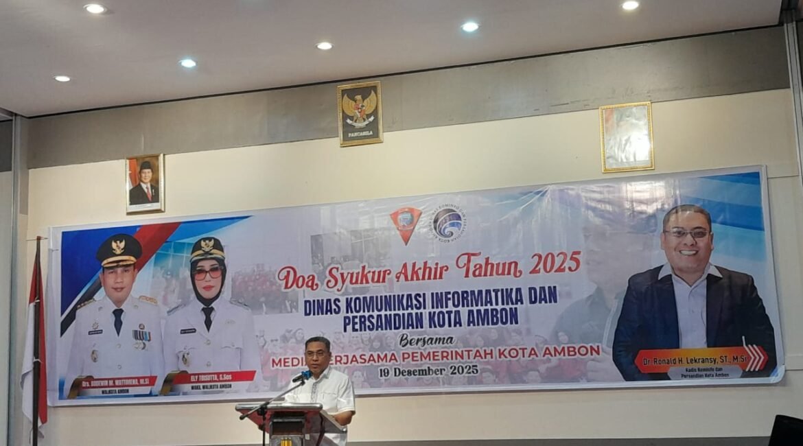 PMN Com AMBON — sebagai bentuk ucapan syukur mengakhiri Tahun pelayanan 2025 maka Dinas komunikasi dan persandian kota Ambon melaksankan ibadah syukur akhir tahun yang dirangkai dengan penukaran kado bersama para media kerjasama pemerintah kota ambon ibadah tersebut hadir Wakil Wali Kota Ambon, ibu Ely Toisuta, para kepala bidang dan...
