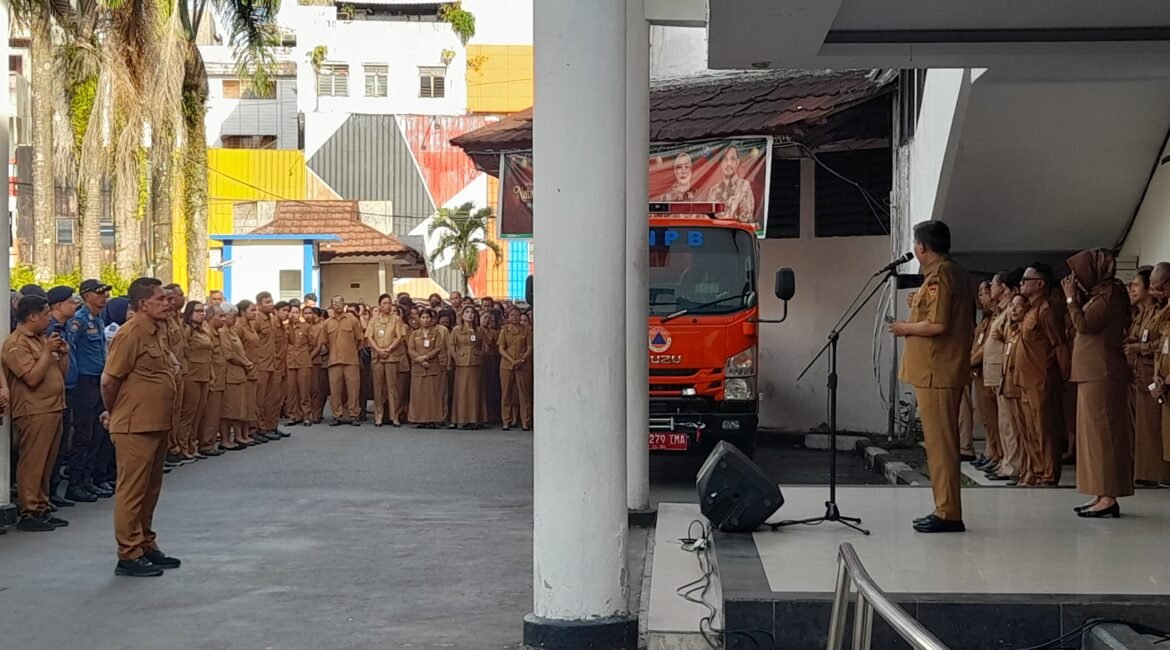 PMN COM- Wali Kota Ambon, Bodewin M. Wattimena memimpin Apel Perdana Tahun 2026 yang digelar di Halaman Balai Kota Ambon, Senin (5/1/26). Apel ini diikuti oleh seluruh Aparatur Sipil Negara (ASN) lingkup Pemerintah Kota Ambon sebagai penanda dimulainya aktivitas pemerintahan di tahun yang baru. Dalam sambutannya, Wali Kota Ambon menyampaikan...