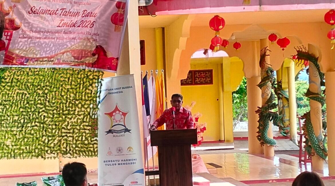 PMN Com walikota ambon Bersama Forkompimda diantaranya kepala Dinas kominfo dan persandian kota Ambon Ronald Lekransy bersama kepala dinas perindustrian dan perdagangan kota ambon kabag protokol Hendrik Risakota Kepala kecamatan Nusaniwe lurah Benteng mengahadiri Syukuran perayaan Tahun Baru Imlek 2577 Kongzili 2026 sebagai momentum memperkuat semangat kebersamaan dalam bingkai “Beta...
