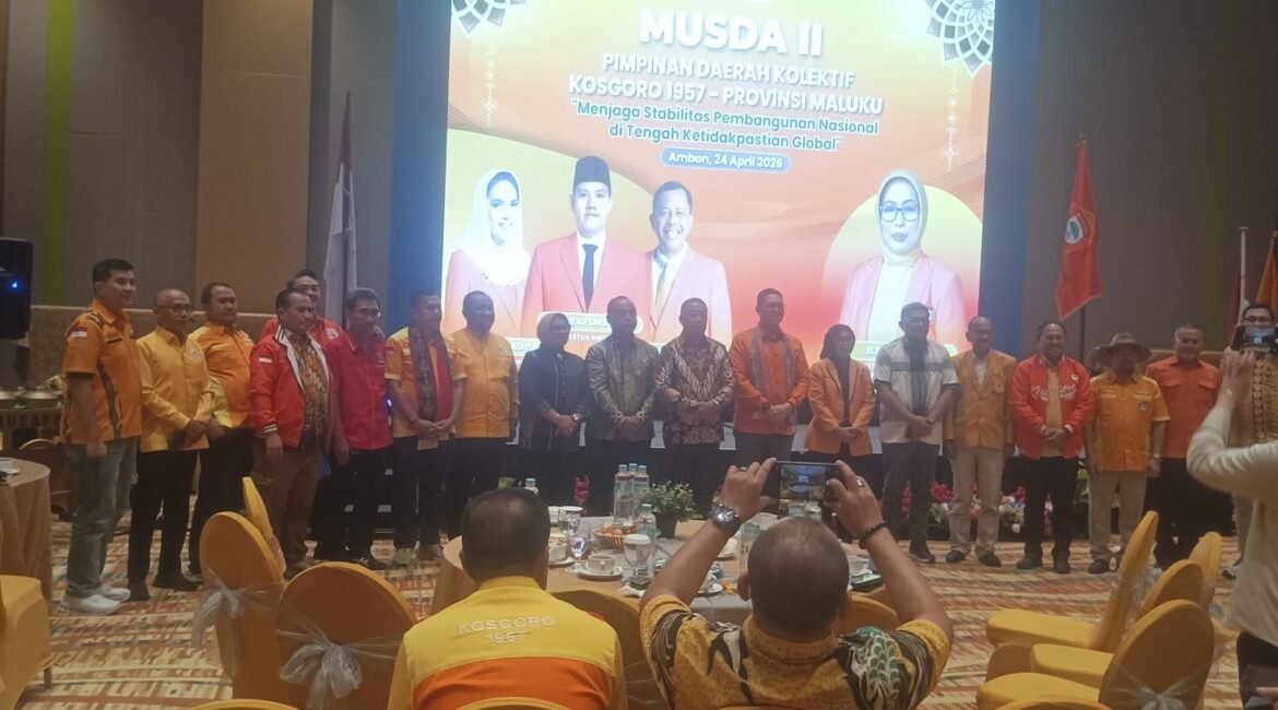 PMN COM Pembukaan musyawarah kedua pimpinan daerah kolektif KOSGORO 1957 di provinsi Maluku Dengan Tema menjaga stabilitas pembangunan nasional Dibtengah Ketidakpastian Global secara resmi dibuka oleh asisten admintrai umum BOy Dominggus kaya mewakili Gubernur Maluku Tirut hadir ketua Umum KOSGORO 1957 DR Dafe AF Laksono, sekjend PPK KOSGORO Sabil Rahman...