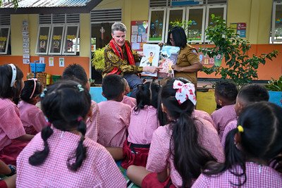 Duta Besar Brazier juga mengunjungi SDN 216 Maluku Tengah yang didukung oleh program Inovasi Australia Indonesia untuk Anak Sekolah Indonesia (INOVASI). Selama di Morotai, Duta Besar Brazier menyaksikan bagaimana perempuan memimpin inisiatif untuk menciptakan masyarakat yang lebih inklusif dan tangguh melalui Kemitraan Australia-Indonesia Menuju Masyarakat Inklusif (INKLUSI).