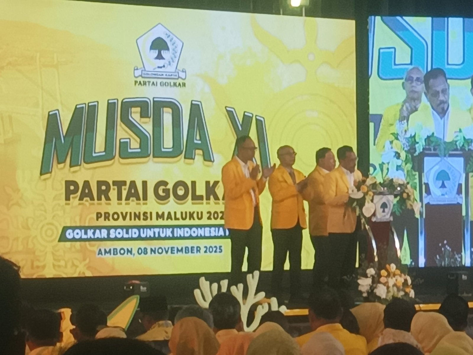Di waktu yang berbeda PLT ketua DPD partai Golkar provinsi Maluku umar Lessy dalam sambutannya menegaskan Kondisi partai golkar beberapa tahun mengalami kemunduran dan jumlah kursi legisatif turun dratis