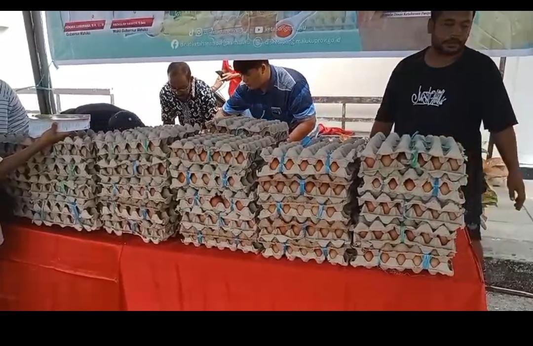 Untuk telur kita bawah dari ambon sebanyak 400 rak dan qkan menyusul beras
