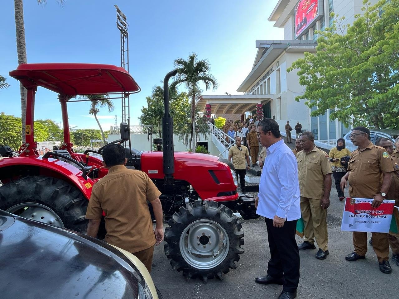 “Sebagai tindak lanjut hasil koordinasi saya sebagai Gubernur dengan Menteri Pertanian dan Wakil Menteri Pertanian di Jakarta, Pemerintah Provinsi Maluku memperoleh dukungan sarana produksi dan alat mesin pertanian, dimana hari ini saya akan menyerahkan secara langsung 12 unit traktor roda empat kepada Dinas Pertanian kabupaten/kota untuk selanjutnya diteruskan kepada kelompok tani penerima,” ujar Gubernur.