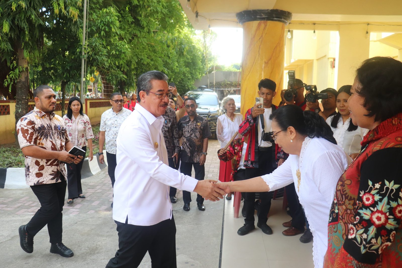 Kehadiran Gubernur Maluku di lingkungan SMA Negeri 1 Ambon disambut dengan penuh antusias oleh seluruh siswa-siswi melalui yel-yel khas sekolah, mencerminkan semangat dan kebanggaan atas kunjungan orang nomor satu di Provinsi Maluku tersebut.