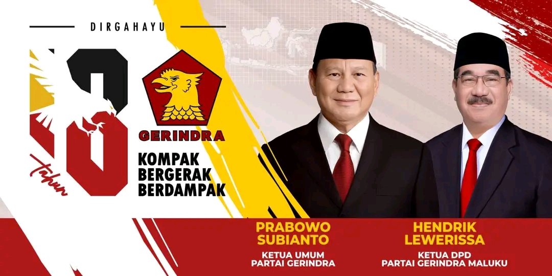 PMN COM Dalam.rangkah memeriahkan HUT partai Gerindra ke-18 berbagai kegiatan sosial, akan dilaksanakan antara lain jalan santai ,program Revolusi Merah Putih berupa pembagian susu kemasan kepada siswa SD, SMP, dan SMA di tiga sekolah di Kota Ambon yang didampingi Ibu Gubernur Maluku, Maya Baby Lewerissa. Selain itu, dilakukan pembagian sembako ke tiga panti asuhan di Ambon pada 4 Februari 2026, serta jalan santai keluarga besar Partai Gerindra Provinsi Maluku di Lapangan Merdeka Ambon pada 7 Februari 2026.