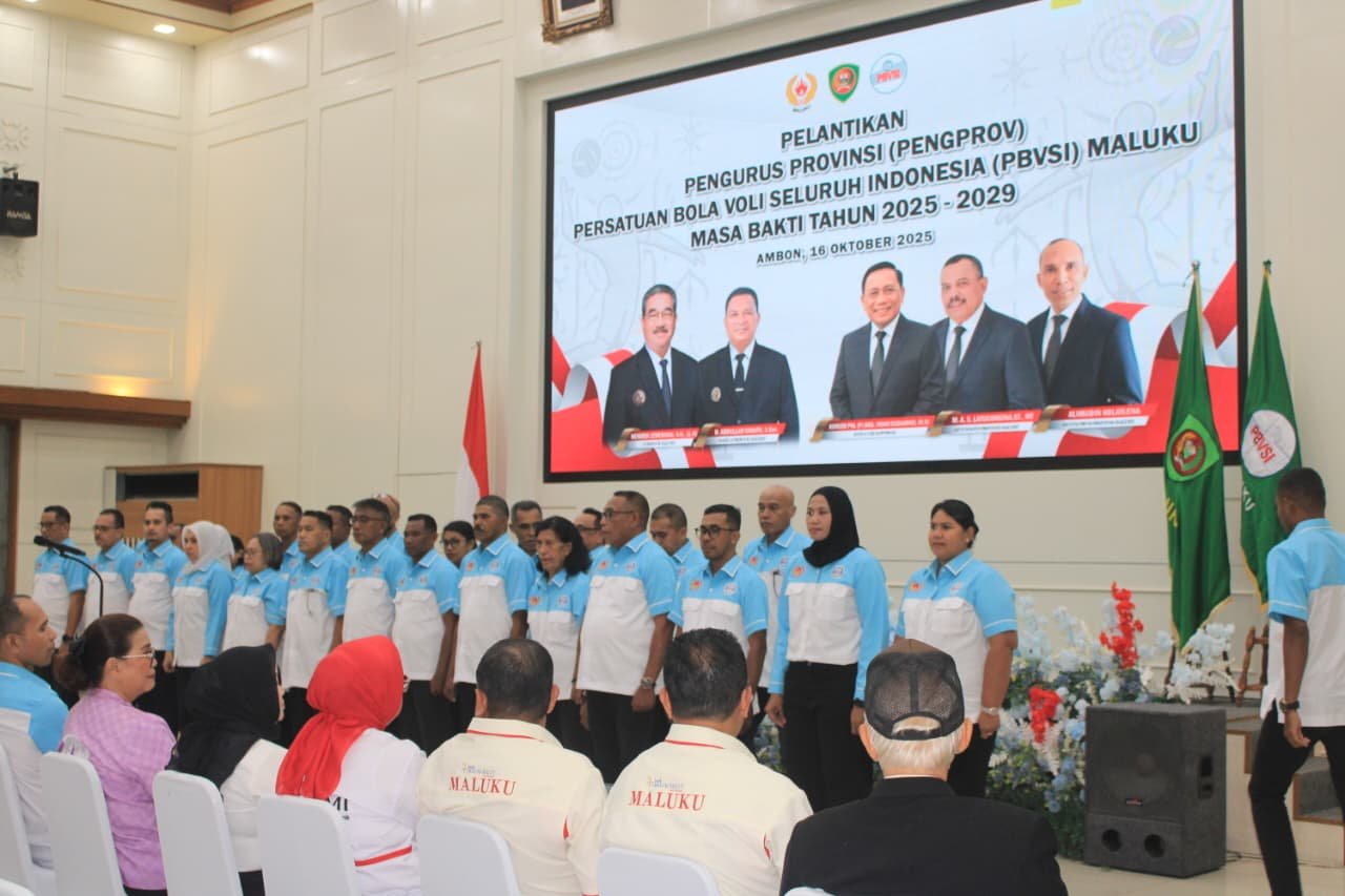 PMN-AMBON – Pengurus Provinsi (Pengprov) Persatuan Bola Voli Seluruh Indonesia (PBVSI) Maluku Masa Bhakti 2025-2029 resmi dilantik oleh Ketua Umum Pengurus Pusat PBVSI, Komjen Pol. (Purn) Dr. Imam Sudjarwo, M.Si.pada Kamis (16/10/2025) malam.