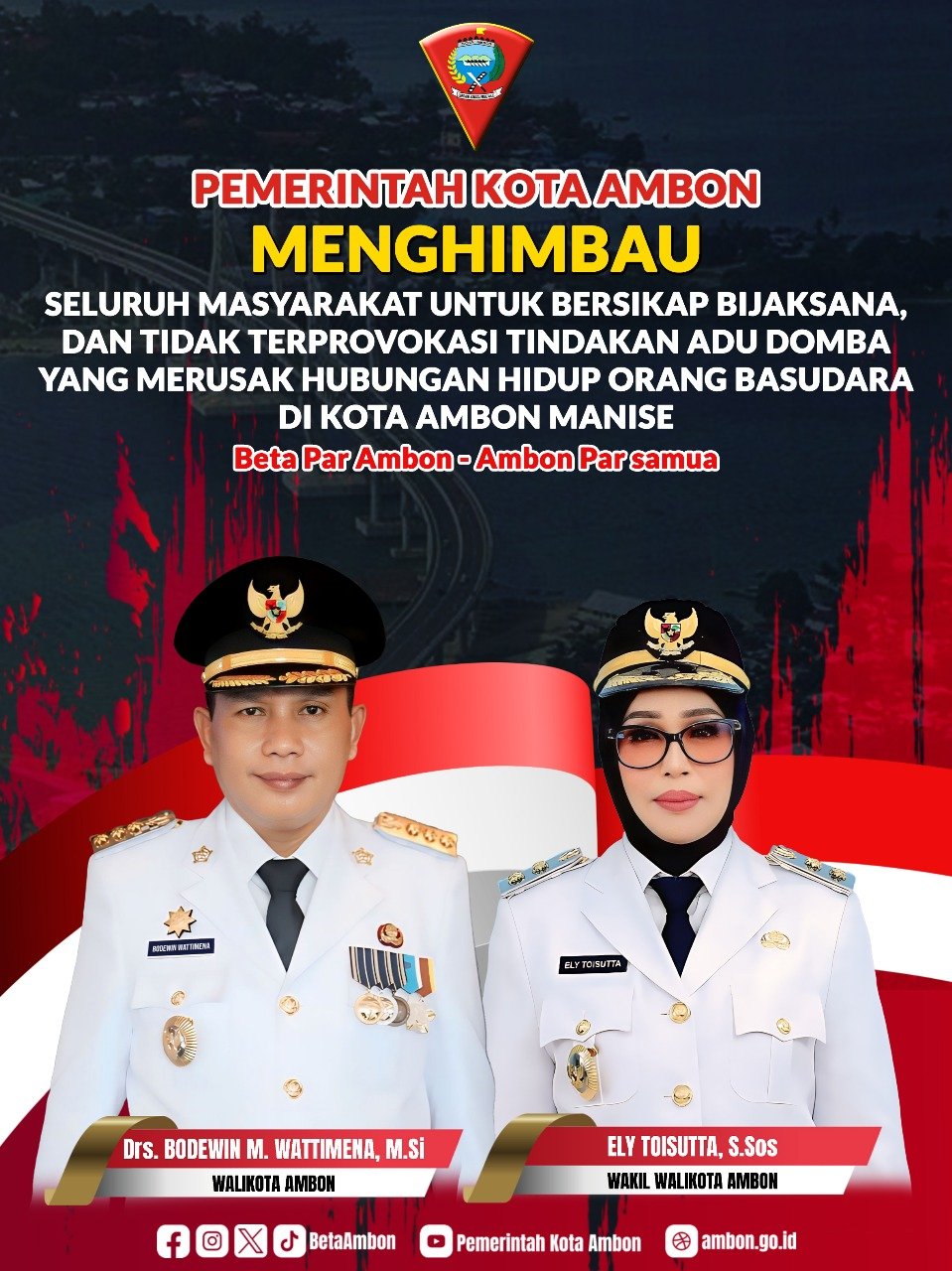 Hari ini kita bersama hadir dalam rangka membuka secara resmi kegiatan Amboina City Rally menyongsong perayaan hari ulang tahun Kota Ambon ke 450