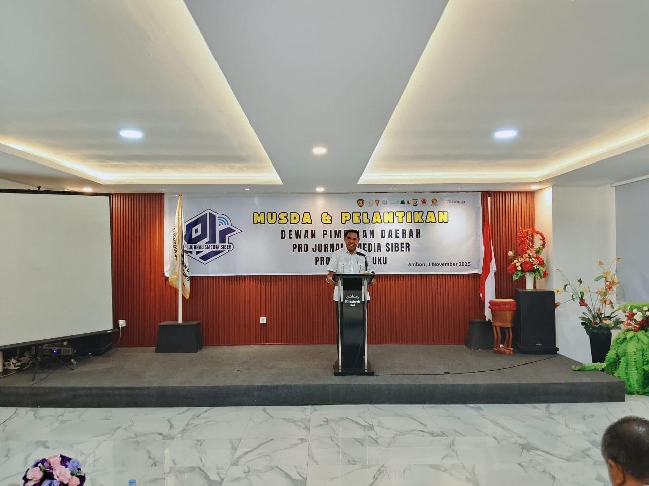 PMN Com Ambon,- Kepala Dinas Komunikasi dan Informatika Provinsi Maluku Drs. Melkias M. Lohy, M.T mewakili Gubernur Maluku hadiri acara Pelantikan DPD Pro Jurnalismedia Siber (PJS) Provinsi Maluku dan Pengurus DPC Kabupaten/Kota se- Maluku bertempat di Hotel Elizabeth Ambon, Sabtu (1/10/2025).